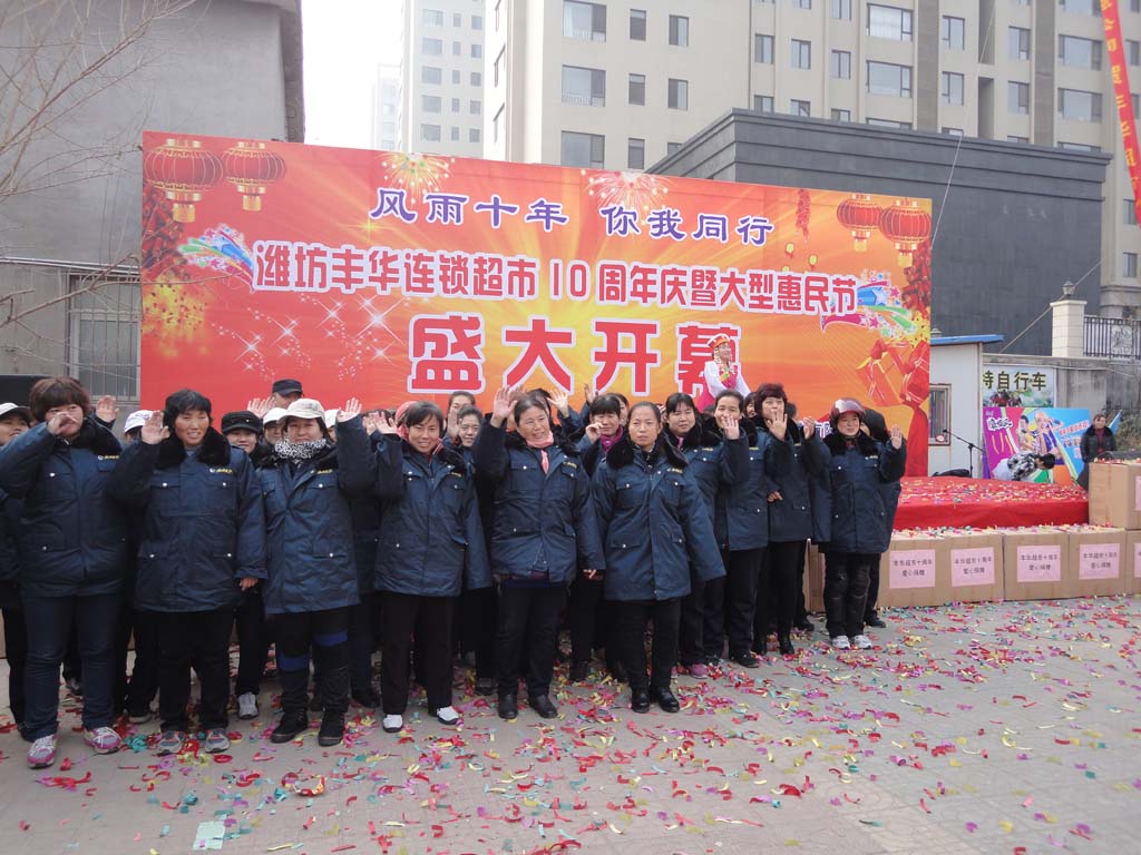 超市是傳統產業,利潤空間有限,但公司盡最大限度逐年提高員工收入,逐年改善工作條件,不斷提升員工幸福指數。張新一說,落實誠信文化本質是奉獻社會。豐華連鎖超市一直熱心社會公益事業,關注弱勢群體。公司領導非常關注貧困學子上學難的問題,多次和有關部門前往諸城、安丘、臨朐困難小學,看望家境貧寒的學生,為學校送去現金、學習用具和多媒體教室設備。春節到來前為社區居民送溫暖,給困難群眾贈送慰問品;資助老齡委開展老人節文化周活動;向市慈善總會、中國志愿者基金會捐款。每年八一建軍節,公司領導都與有關部門到駐濰部隊走訪慰問子弟兵,開展軍民共建。企業還通過“慈心一日捐”、地震捐款、關心特困員工、青年志愿者活動等途徑,為員工樹立奉獻意識、責任意識、愛心意識。幾年來,已累計捐款捐物幾十萬元。