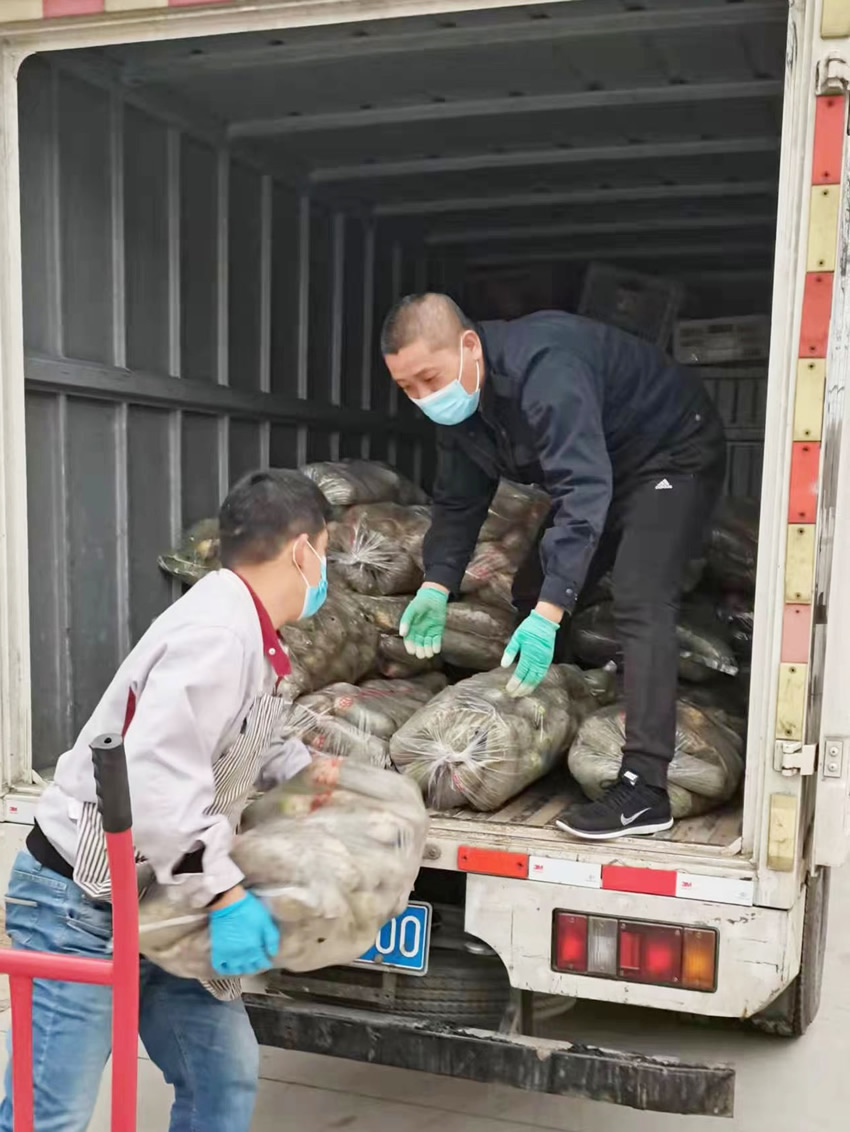 店長趙建寶及時作出決斷和安排,帶領大家在疫情之下有序營業,同時想盡各種辦法保障生鮮供應,充分發揮了榜樣引領示范作用,使得高新店形成了“人人都是一塊磚,哪里需要哪里搬”的工作氛圍。為了保證貨源充足,能讓顧客買到新鮮且價格便宜的蔬菜,凌晨3點趙建寶、王金文和劉軍偉三個人就開著貨車一起去壽光進菜,后來,連壽光都沒法批發葉菜類生鮮產品了,就想辦法聯系以前去進過菜的種植戶,直接到田間大棚采購。貨車到了后,林艷菲在群里一吆喝,大家就都放下手里的活兒先幫忙卸菜,人多力量大,保證開門之前把新鮮的蔬菜整整齊齊地擺放到貨架上。