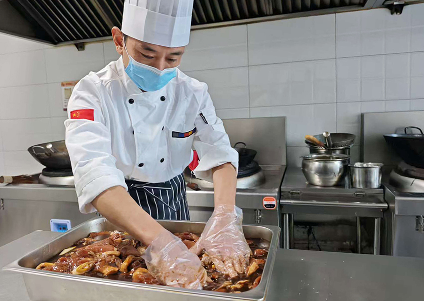 福瑞瀾德的廚師正在專注處理新鮮原材料,精準配比調(diào)料、均勻裹覆揉搓,以耐心鎖鮮入味,只為做好每份美食,點亮食客舌尖。